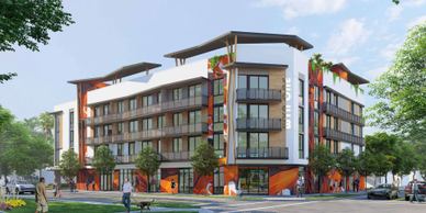 Complejo de apartamentos de 51 unidades con jardines exteriores, gimnasio y coworking.